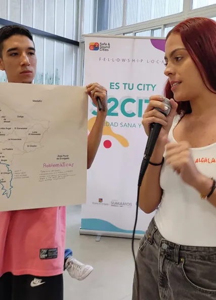 In response, FMS advances the S²Cities systems approach in Envigado by strengthening institutional collaboration and embedding youth participation within the city’s governance structures through Unir para Construir (“Unite to Build”)—a capacity-strengthening programme bringing together decision makers across sectors to reflect, listen and co-create systemic solutions to youth safety challenges. In parallel, a targeted capacity-building training supports young people in strengthening their leadership skills through learning and collaboration, preparing them to ideate innovative urban solutions. This multi-level strategy transforms youth engagement from isolated actions into a sustained, citywide movement, ensuring that young people remain central to decision-making.